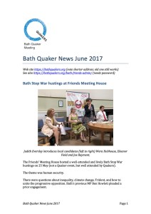 May 26, 2017May 26, 2017williamheath Ecce diurna! Behold: we have a newsletter Bath Quaker News June 2017 is at the printers. You can download a full colour copy here. BQN June 2017 Share this: Click to share on X (Opens in new window) X Click to share on Facebook (Opens in new window) Facebook Like Loading... Related