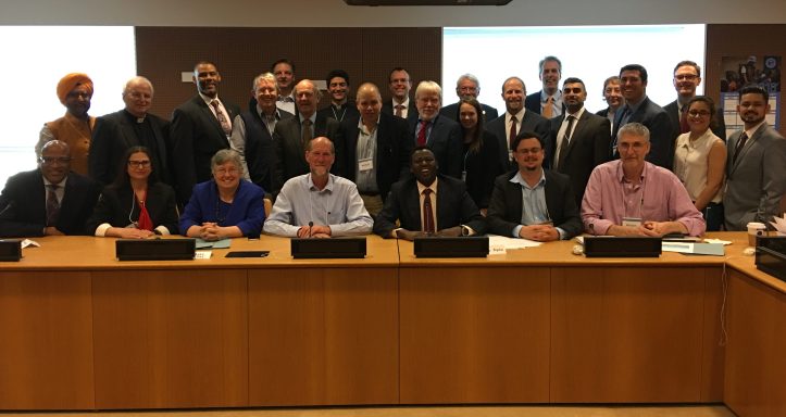 Delegates for the ARC Faith in Finance planning meeting gather outside the United Nations building in New York.