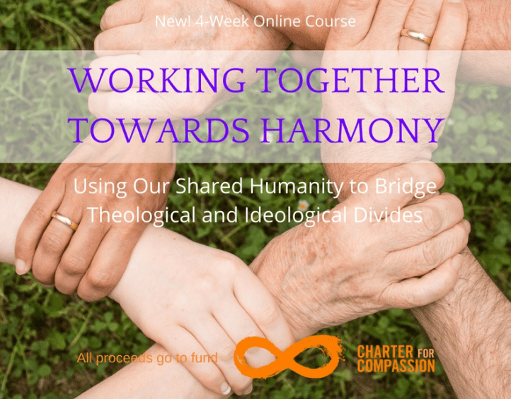 The Charter for Compassion, the global campaign created by religious writer Karen Armstrong, is offering a four-week online course. It’s called Working together towards harmony; all are welcome; cost is $15. Course details and registration here.
