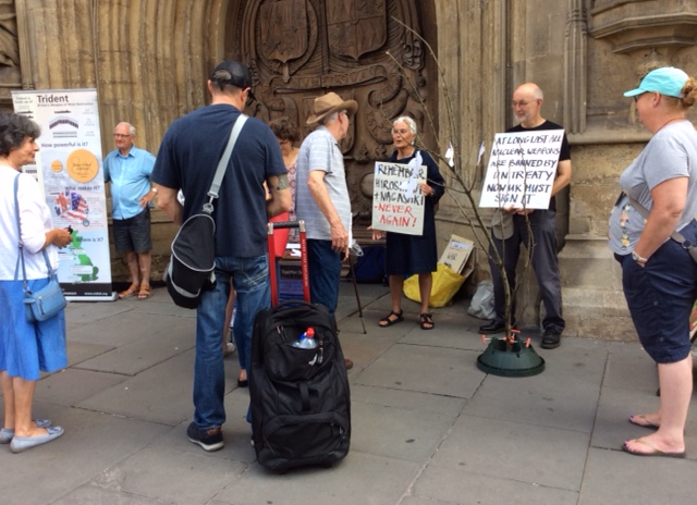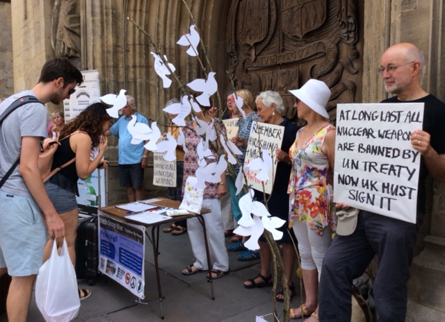 Bath Stop War holds a weekly vigil outside Bath Abbey Saturdays 1130-1230. Last week was the anniversary of the Hiroshima atomic bomb. Nick Francis writes: