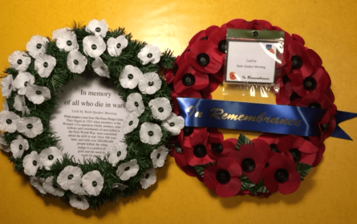 On Sunday 11 Nov – the 100th anniversary of WWI Armistice Day – Bath Quakers again take part in the civic and military commemoration at the Bath war memorial. This year we will lay two wreaths joined together: one of white and one of red poppies.