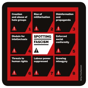 Eight ways: the campaign has produced a Spotting Fascism beer mat.