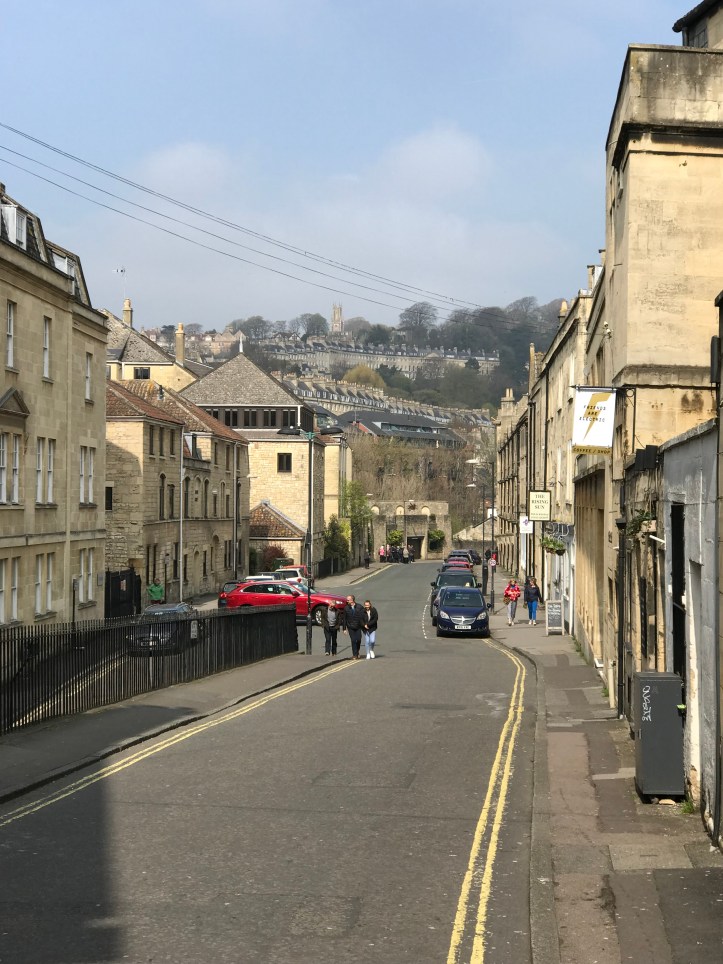 From iconic Pulteney Bridge head down Grove Street, with St Stephen’s church on the horizon.