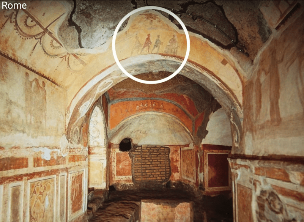 You can take a virtul tour of the Catacombe of Priscilla here, and there’s an accessible webinar about it here by the Khan Academy.