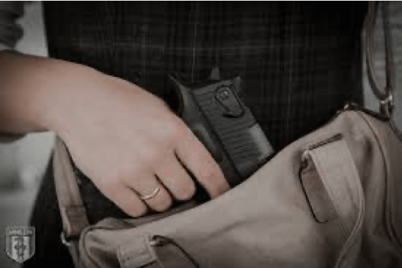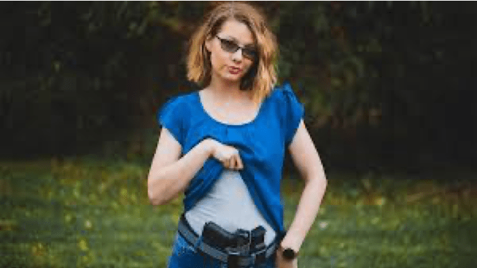 Woman hiding a gun