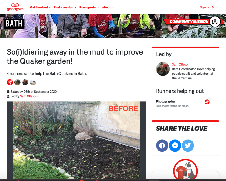 Goodgym runners getting fit at the Bath Quakers burial ground.