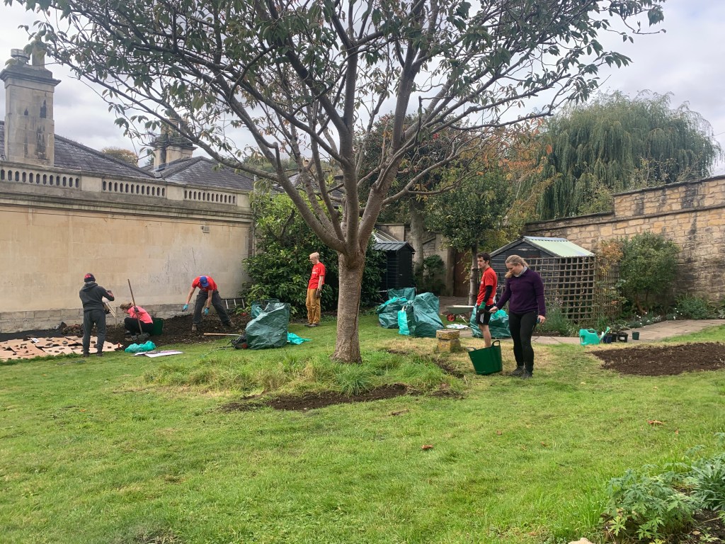 At the beginning of the months six Friends spent a beautiful afternoon planting allium and narcissi bulbs. One of our neighbours, who has watched our progress with interest, kindly dug up and split some of her perennials to put in our borders. I am looking forward to seeing the white irises emerge in the spring alongside the purple alliums. Next to them we have planted some large white poppies (also donated). After gardening some of us sat on the new benches in the sun, drinking tea and chatting. The social side of this group is as important as the gardening.
