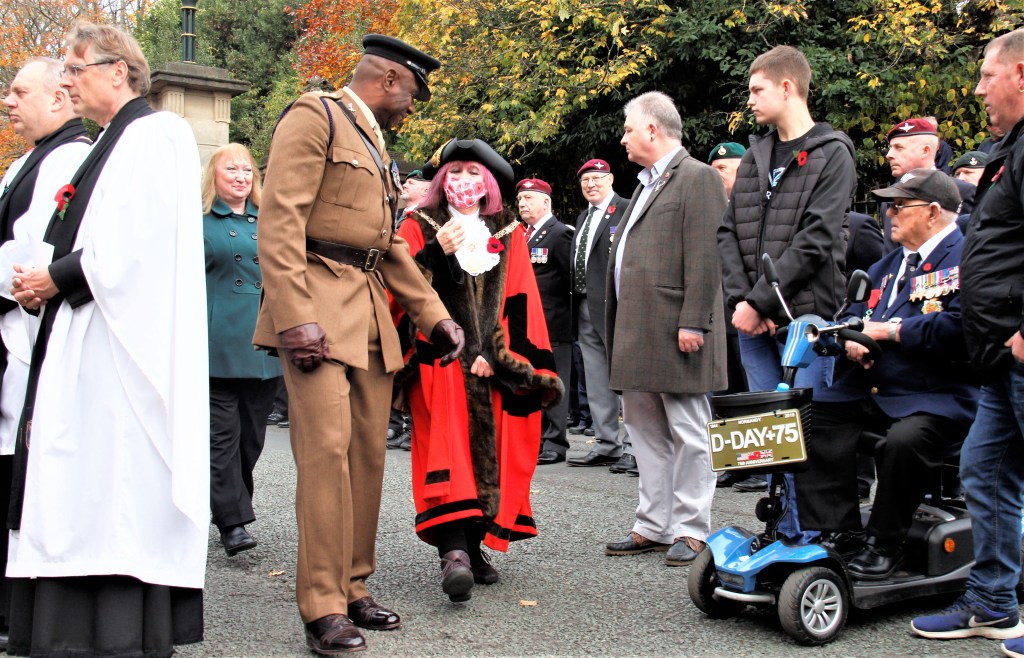 We attended with prior permission and were made to feel welcome by the British Legion, priests, civic and military authorities. Shown here: Bath Major Cllr June Player(centre) and the Rector of Bath Abbey Revd Canon Guy Bridgewater, (left).