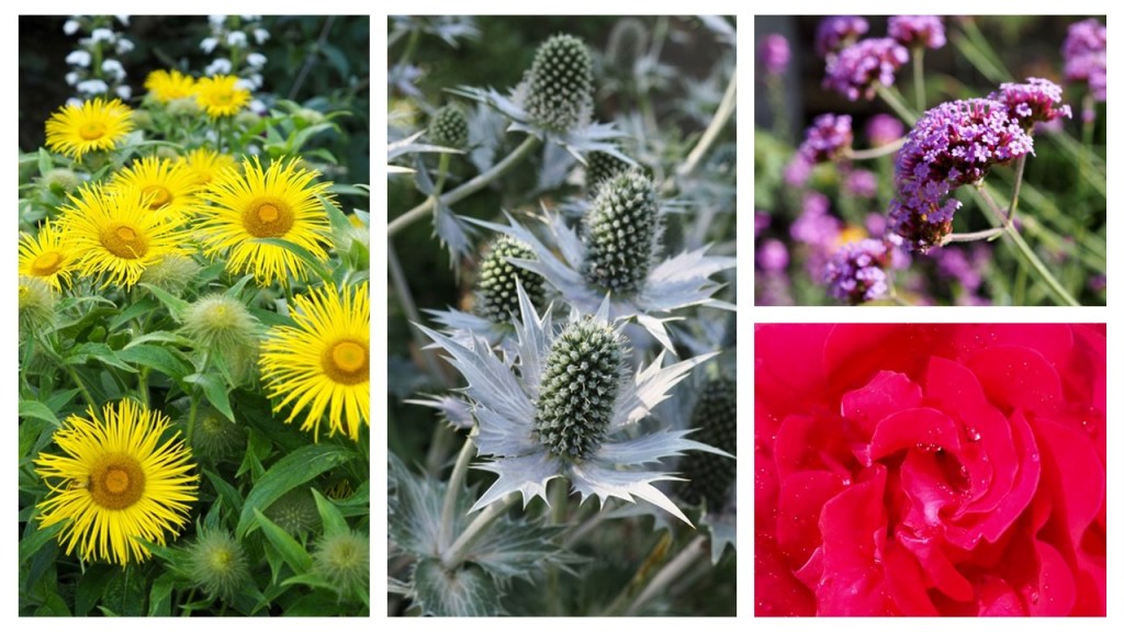 July has been the driest and warmest month since records began. However, despite the lack of rain and intense heat, the burial ground continues to provide a wonderful display of colour as the later perennials come into flower. Some of the plants are thriving in the hot dry conditions – plants such as verbena bonariensis, echinacea, echinops, salvias and fennel. The hollyhocks are growing taller by the day and their wide-open flowers attract many insects. In addition the repeat flowering roses are now in their second flush, and the Quaker star rose has been particularly prolific.